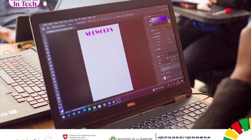 Les cours du programme 𝗦𝗛𝗘 𝗪𝗢𝗥𝗞𝗦 𝗜𝗡 𝗧𝗘𝗖𝗛 se poursuivent au sein de notre centre de formation AY Solutions - Centre d'incubation et d'insertion des jeunes. Ce mardi 5 novembre 2024, les participantes ont bénéficié d'une formation à la création de visuels sur #Photoshop, avec une introduction aux bases de ce logiciel.