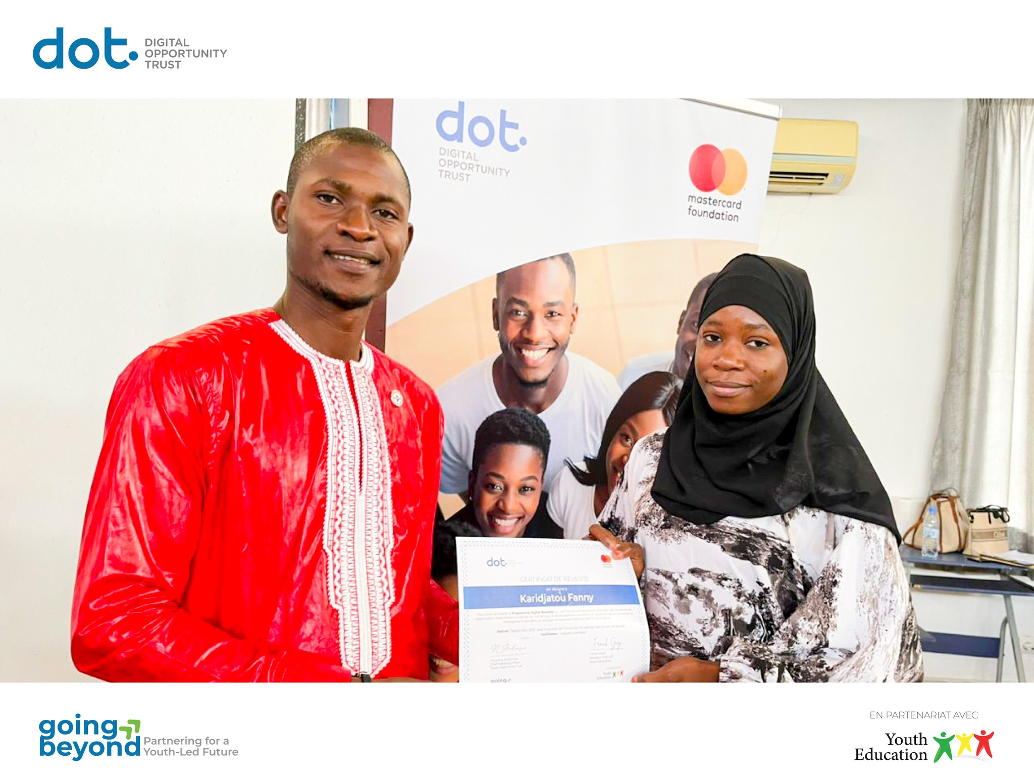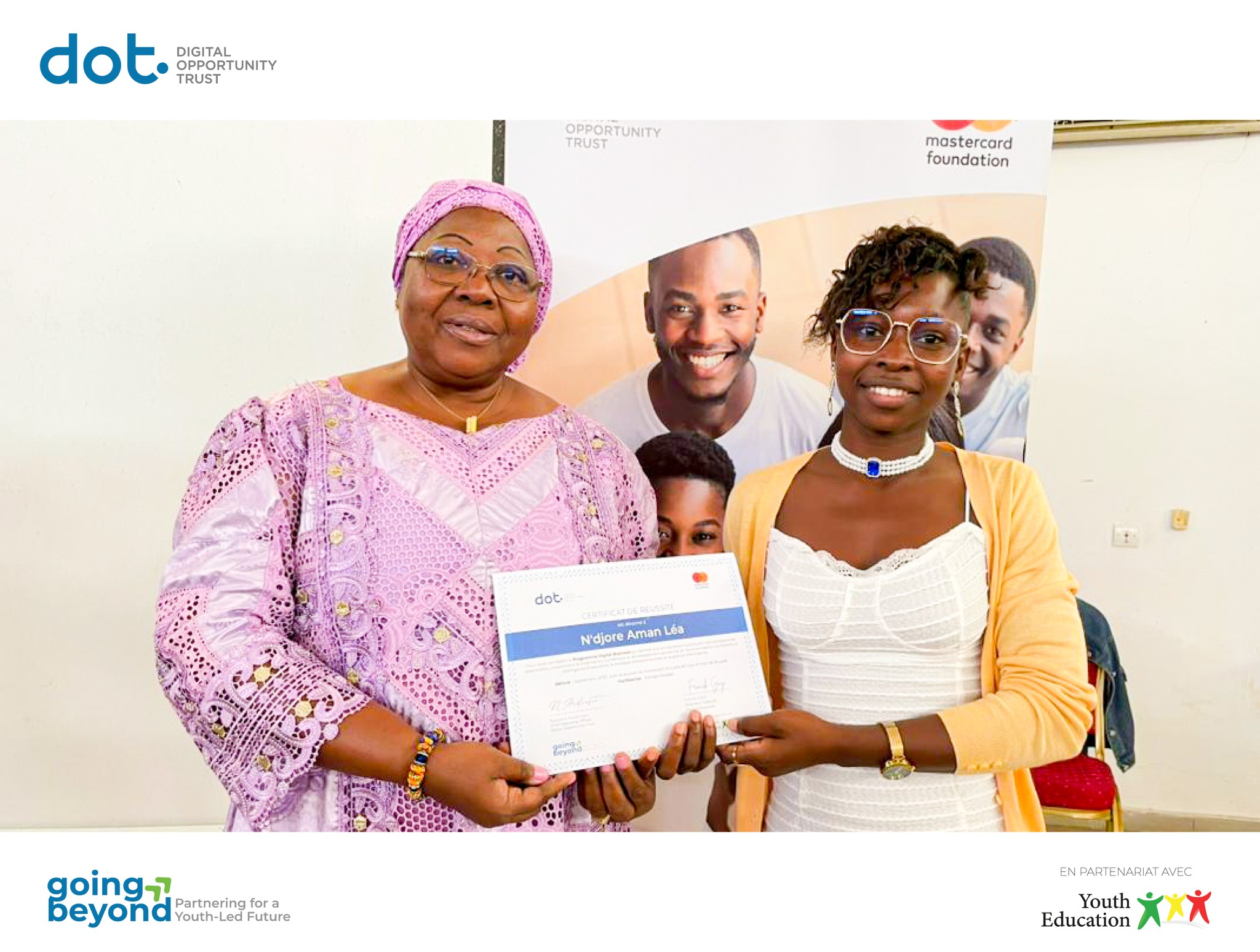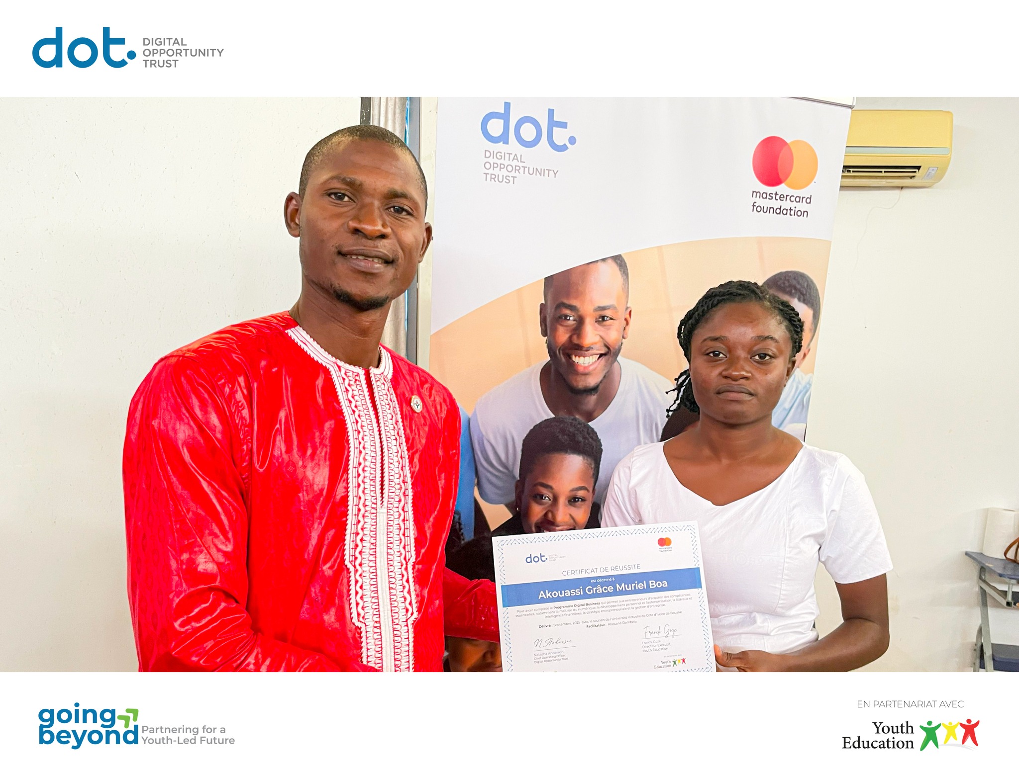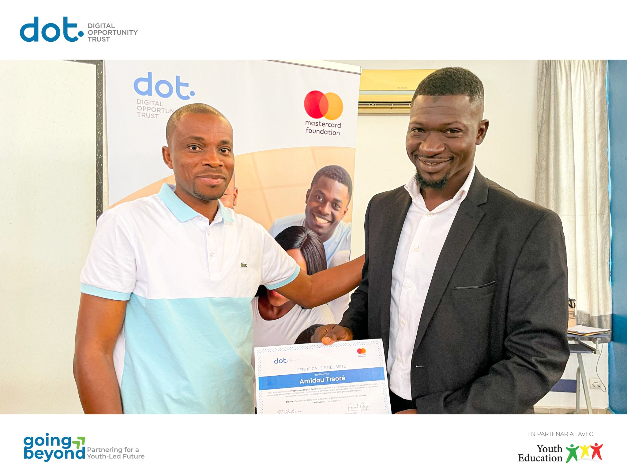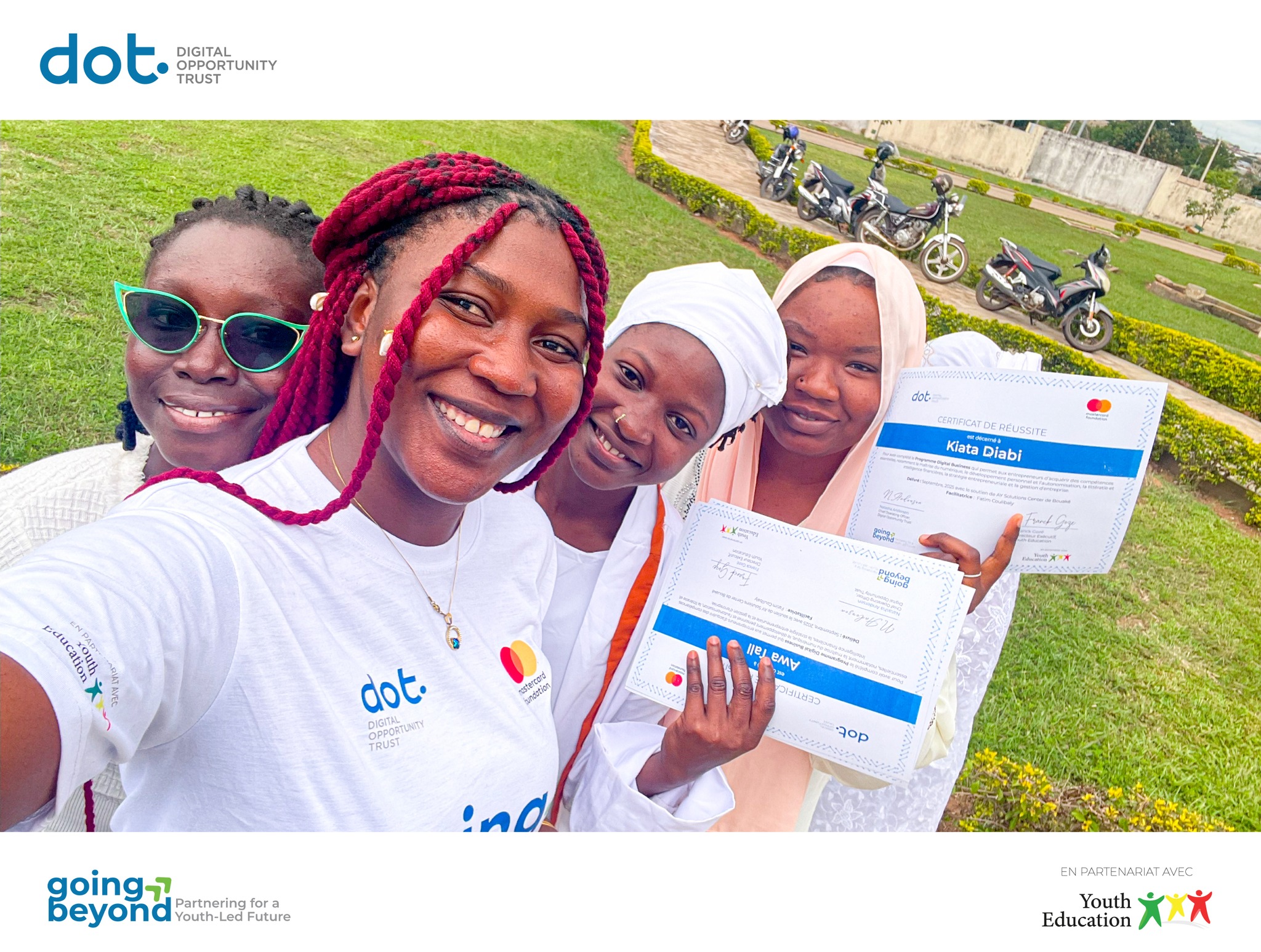À l’instar de 𝗦𝗮𝗻-𝗣𝗲𝗱𝗿𝗼 et 𝗗𝗮𝗹𝗼𝗮, 𝗕𝗼𝘂𝗮𝗸𝗲́ a célébré les réussites des 𝗷𝗲𝘂𝗻𝗲𝘀 𝗲𝗻𝘁𝗿𝗲𝗽𝗿𝗲𝗻𝗲𝘂𝗿𝘀 𝗱𝘂 𝗽𝗿𝗼𝗴𝗿𝗮𝗺𝗺𝗲 𝗗𝗶𝗴𝗶𝘁𝗮𝗹 𝗕𝘂𝘀𝗶𝗻𝗲𝘀𝘀, dans le cadre du 𝗣𝗿𝗼𝗴𝗿𝗮𝗺𝗺𝗲 𝗱𝗲 𝗟𝗲𝗮𝗱𝗲𝗿𝘀𝗵𝗶𝗽 𝗱𝗲𝘀 𝗝𝗲𝘂𝗻𝗲𝘀 du projet 𝗚𝗼𝗶𝗻𝗴 𝗕𝗲𝘆𝗼𝗻𝗱, mis en œuvre par Youth Education en partenariat avec Digital Opportunity Trust et Mastercard Foundation .