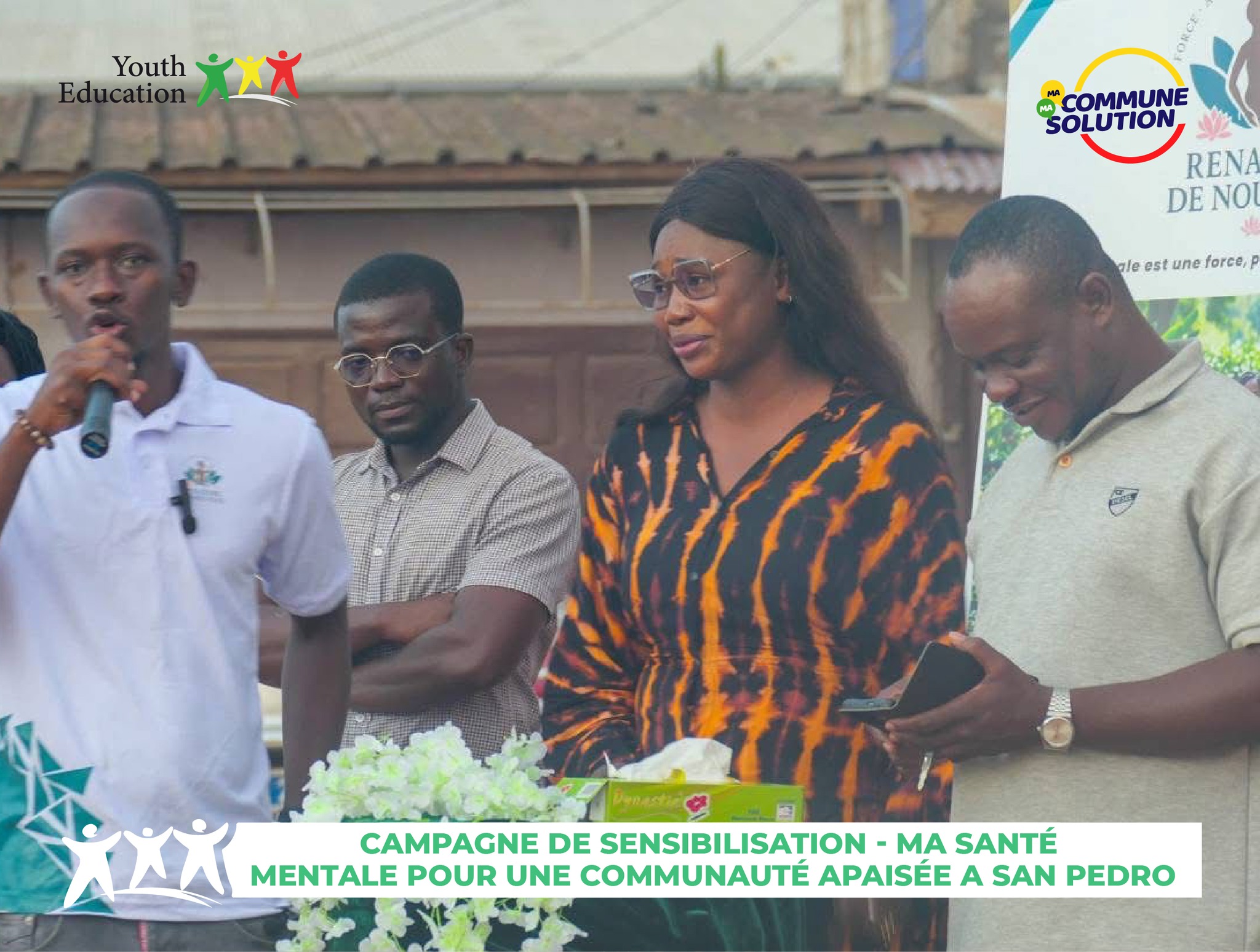 Ce samedi 04 octobre 2025, Youth Education, marquant son engagement en faveur de la promotion du bien-être mental, a pris part, sur invitation de l’𝗢𝗡𝗚 𝗥𝗲𝗻𝗮𝗶̂𝘁𝗿𝗲 𝗱𝗲 𝗡𝗼𝘂𝘃𝗲𝗮𝘂, à une importante campagne de sensibilisation organisée en collaboration avec le 𝗚𝗿𝗼𝘂𝗽𝗲𝗺𝗲𝗻𝘁 𝗦𝗮𝗻𝘁𝗲́ 𝗠𝗲𝗻𝘁𝗮𝗹𝗲 (𝗚𝗦𝗠), autour du thème : « Ma santé mentale pour une communauté apaisée » à 𝗦𝗮𝗻 𝗣𝗲𝗱𝗿𝗼.