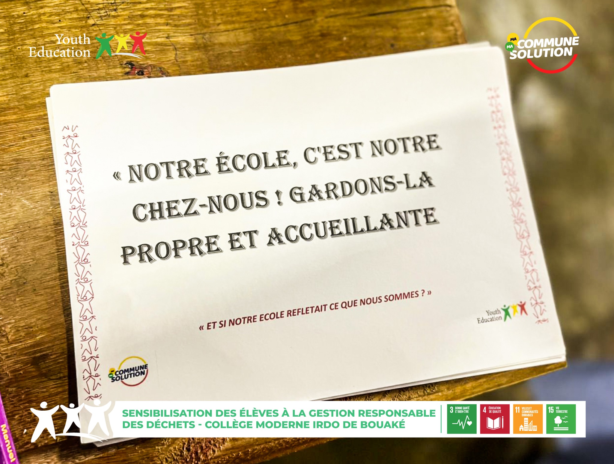 C’est avec cette conviction que 𝗹𝗲 𝗚𝗿𝗼𝘂𝗽𝗲 𝗕𝗼𝘂𝗮𝗸𝗲́ 𝗘𝘀𝘁 𝗭𝗼𝗻𝗲 𝟯 𝗱𝘂 𝗽𝗿𝗼𝗷𝗲𝘁 𝗠𝗮 𝗖𝗼𝗺𝗺𝘂𝗻𝗲, 𝗠𝗮 𝗦𝗼𝗹𝘂𝘁𝗶𝗼𝗻 𝗮 𝗹𝗮𝗻𝗰𝗲́ 𝗹𝗲 𝗖𝗵𝗮𝗹𝗹𝗲𝗻𝗴𝗲 “𝗦𝗲𝗺𝗮𝗶𝗻𝗲 𝗭𝗲́𝗿𝗼 𝗗𝗲́𝗰𝗵𝗲𝘁” 𝗮𝘂 𝗖𝗼𝗹𝗹𝗲̀𝗴𝗲 𝗠𝗼𝗱𝗲𝗿𝗻𝗲 𝗜𝗥𝗗𝗢 de #Bouaké.