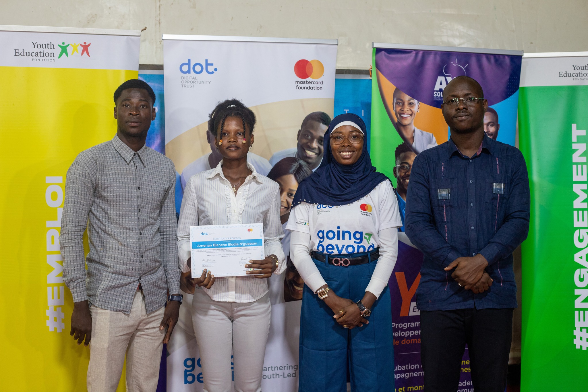 𝟭𝟰𝟬 𝗷𝗲𝘂𝗻𝗲𝘀 𝗲𝗻𝘁𝗿𝗲𝗽𝗿𝗲𝗻𝗲𝘂𝗿𝘀 de la deuxième cohorte du programme #DOTGoingBeyond mis en œuvre par #YouthEducation, en partenariat avec Digital Opportunity Trust et la Mastercard Foundation ont été gradués à l’issue de six semaines de formation intensive en 𝗰𝗼𝗺𝗽𝗲́𝘁𝗲𝗻𝗰𝗲𝘀 𝗻𝘂𝗺𝗲́𝗿𝗶𝗾𝘂𝗲𝘀, 𝗲𝗻𝘁𝗿𝗲𝗽𝗿𝗲𝗻𝗲𝘂𝗿𝗶𝗮𝘁 𝗲𝘁 𝗹𝗲𝗮𝗱𝗲𝗿𝘀𝗵𝗶𝗽.