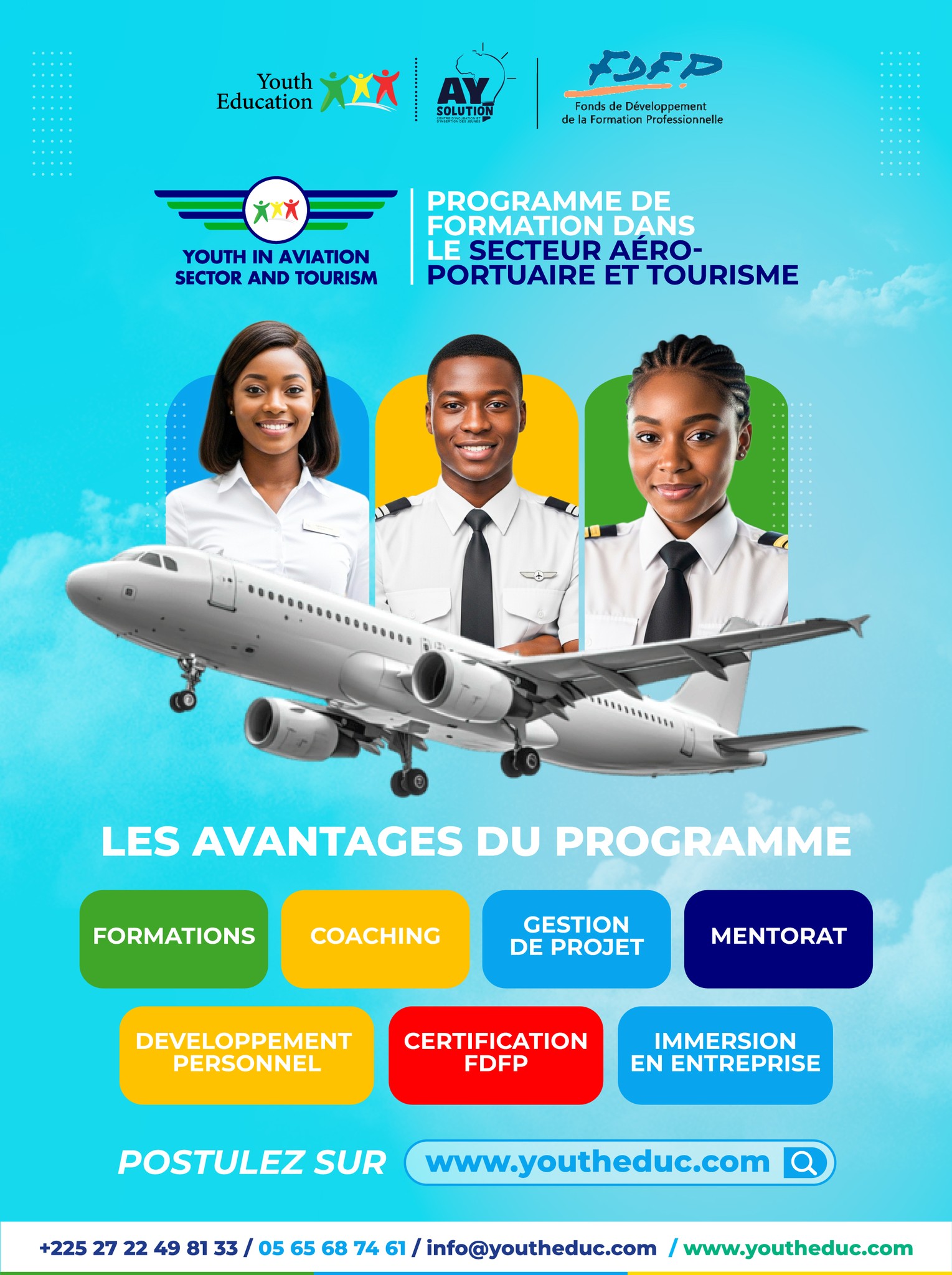 #YouthEducation #AYSsolutionsCenter #YouthInAviation #Tourism #AirportCareers #YouthTraining #AYSolutions #ProfessionalIntegration #Abidjan #ProfessionalTraining #Aviation