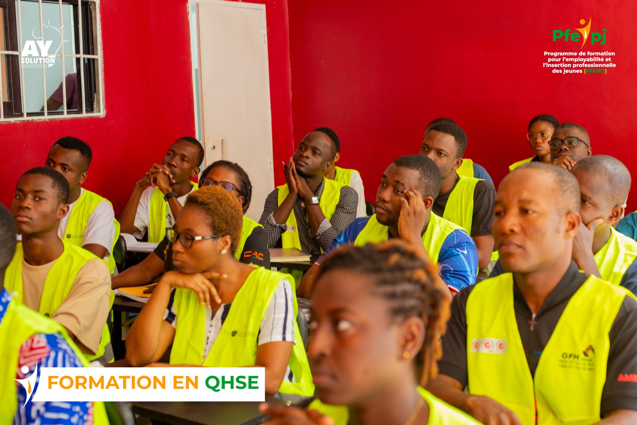 As part of the Youth Employability and Professional Integration Training Program (#PFEIPJ), implemented by #AYSolutionCenter in collaboration with the Youth Employment Agency, our Youth in Industry program participants attended a QHSE (Quality, Hygiene, Safety, and Environment) training led by Mr. Franck GOZE.