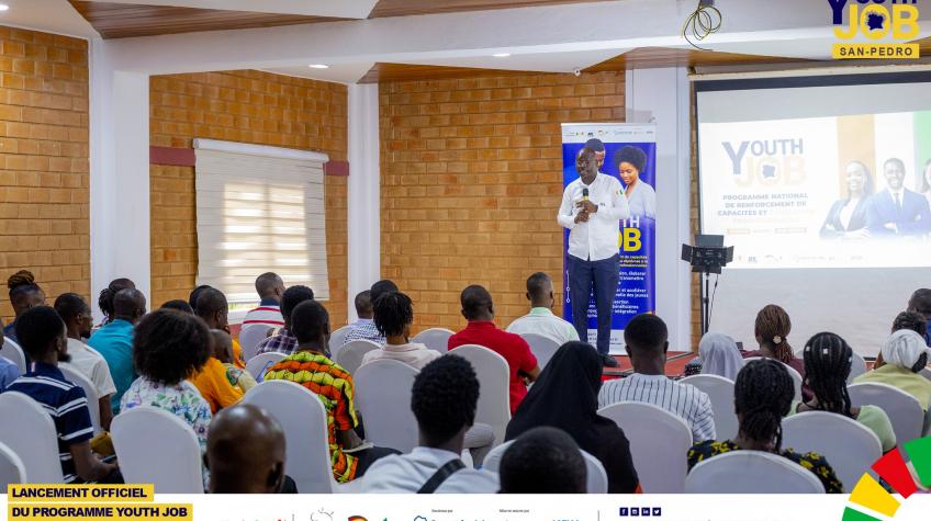 M.ย Franck Gozรฉ, fondateur deย Youth Education, a prรฉsentรฉ les objectifs et les ambitions du programme ๐˜๐Ž๐”๐“๐‡ ๐‰๐Ž๐ pour San-Pedro, ainsi que les actions en cours pour une mise en ล“uvre efficace du programme dans le Bas-Sassandra.